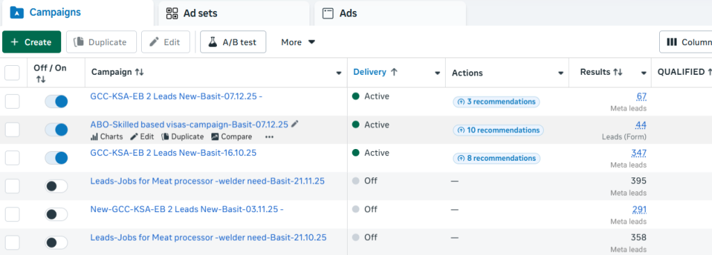 Creative testing played a key role in this campaign’s success. Multiple ad variations were tested across formats such as images, videos, and primary text combinations to identify what resonated best with the target audience. High-performing creatives were scaled, while underperforming assets were optimized or paused to maintain efficiency.